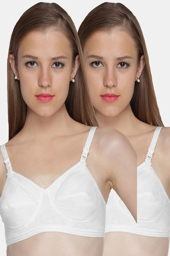 Sonari Nursing Double Layered Non Wired 3/4th Coverage Maternity Bra (Pack of 2) - White