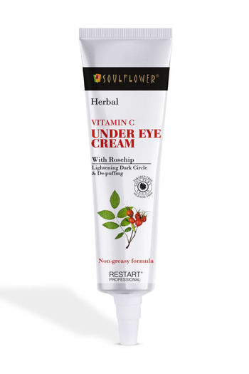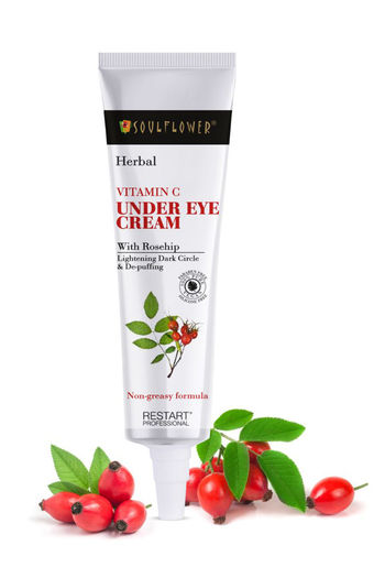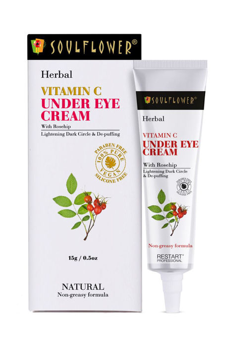 Soulflower Herbal Vitamin C Under Eye Cream With Rosehip- Lightening Dark Circle & De-Puffing, 15G