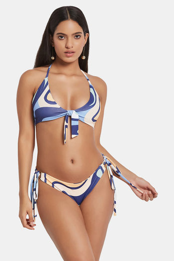 Buy Secrets By ZeroKaata Printed Halter Beachwear Bikini Set - Dark Blue