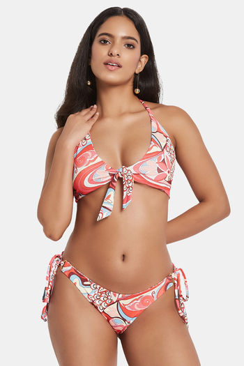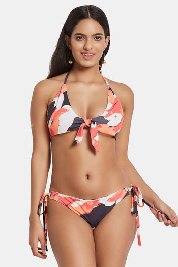 Buy Secrets By ZeroKaata Printed Halter Beachwear Bikini Set - Orange