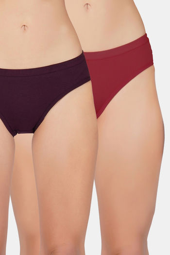 Buy Bleeding Heart Medium Rise Half Coverage Bikini Panty (Pack of 2) - Wine Magenta