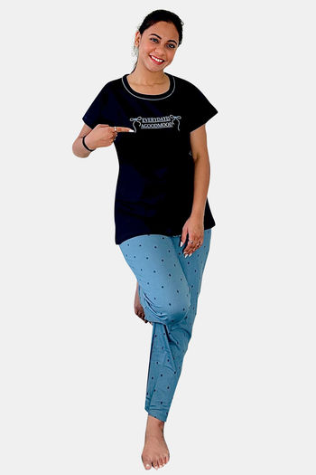 Buy Zivame Indigo Wild Knit Poly Pyjama Set - Moonlight Ocean