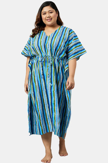 Buy Secrets By ZeroKaata Plus Size Pure Cotton Printed Kaftan Cover Up - Blue Print