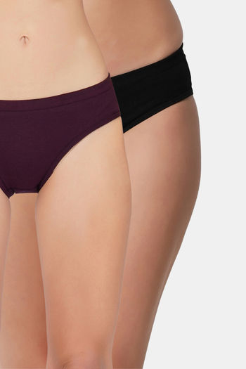 Buy Bleeding Heart Medium Rise Half Coverage Bikini Panty (Pack of 2) - Wine Magenta