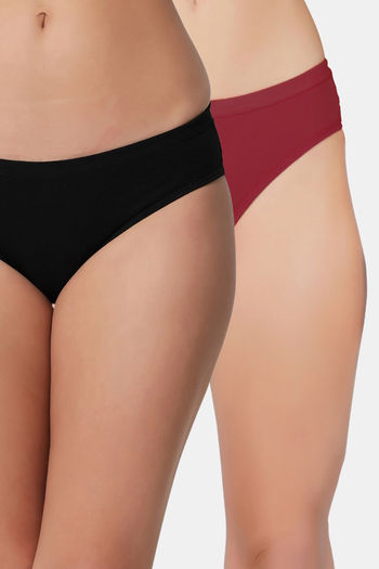 Buy Bleeding Heart Medium Rise Half Coverage Bikini Panty (Pack of 2) - Maroon Black