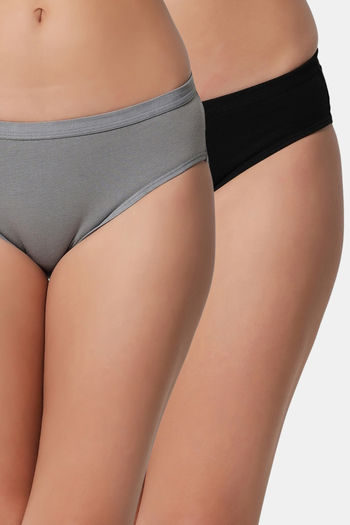 Buy Bleeding Heart Medium Rise Half Coverage Bikini Panty (Pack of 2) - Grey Black