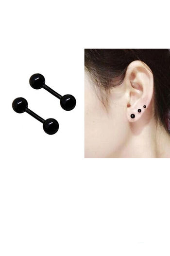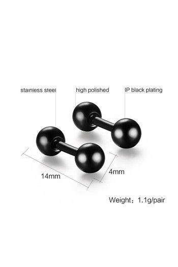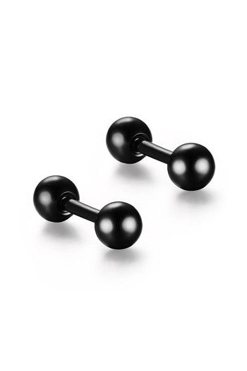 Yellow Chimes Stainless Steel Dumbbells Shape Black Studs Earrings