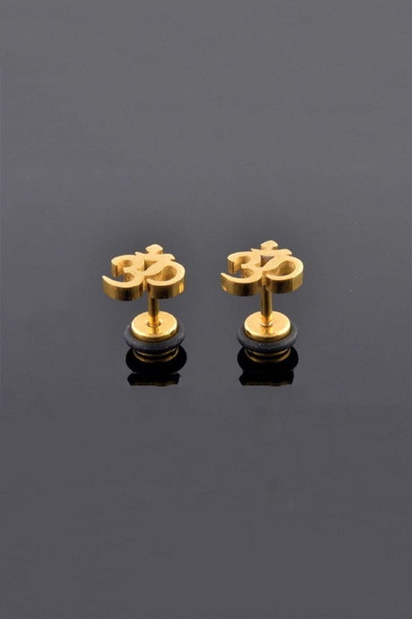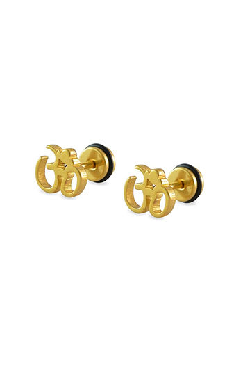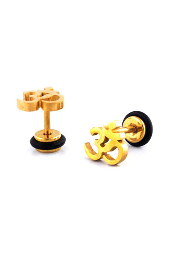 Yellow Chimes Stainless Steel Fashion Golden Om Stud Earrings