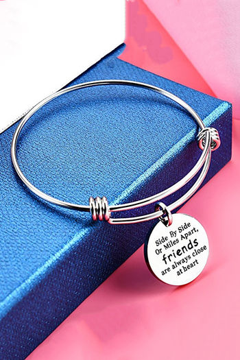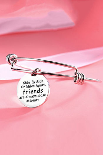 Yellow Chimes Stainless steel Friendship Quote Engraved Charm Bracelet - Silver