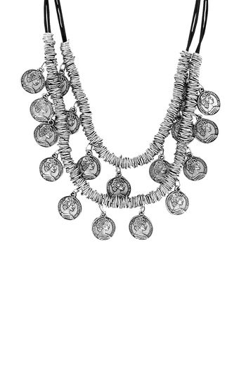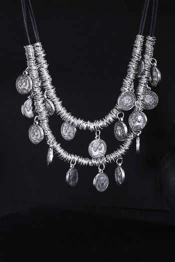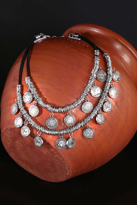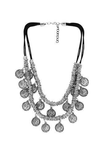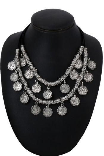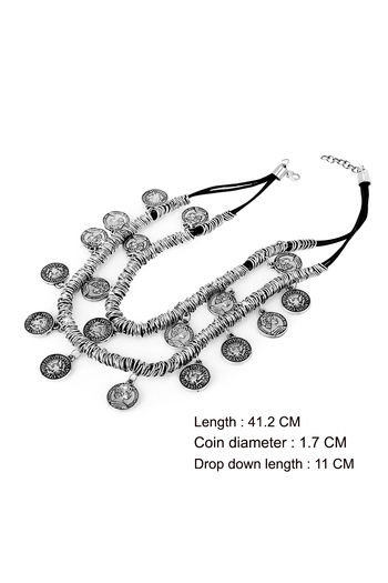 Yellow Chimes Stylish German Silver Oxidised Designer Crafted Bohemia Gypsy Coins Traditional Layered Necklace
