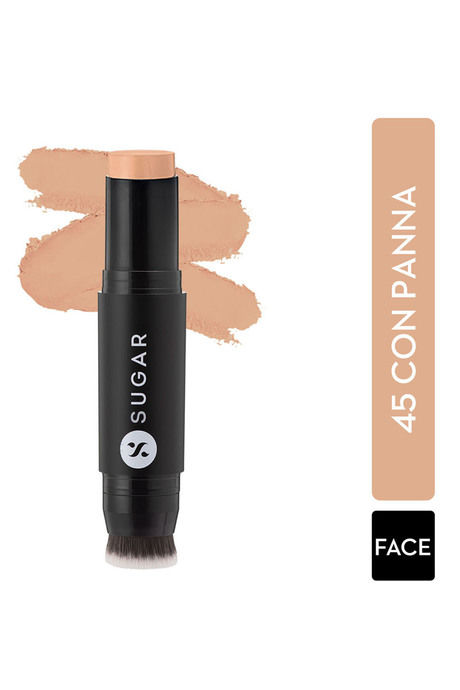 SUGAR Cosmetics Ace Of Face Foundation Stick With Inbuilt Brush Foundation - 45 Con Panna (Medium Beige, Golden Undertone), 12 g