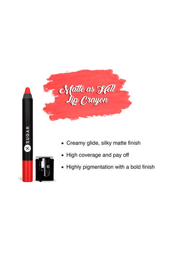 SUGAR Cosmetics Matte As Hell Crayon Lipstick - 06 Coraline Jones (Orange Coral), 2.8 g