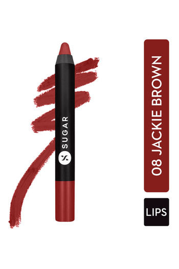 SUGAR Cosmetics Matte As Hell Crayon Lipstick - 08 Jackie Brown (Reddish Brown), 2.8 g