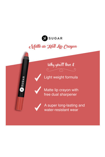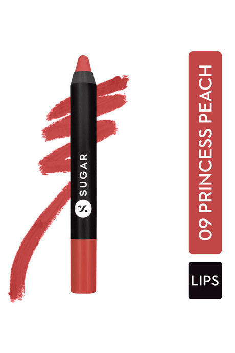 SUGAR Cosmetics Matte As Hell Crayon Lipstick - 09 Princess Peach (Peach), 2.8 g