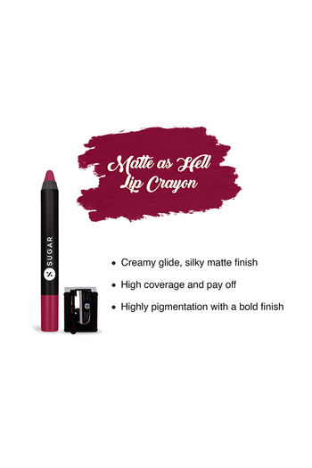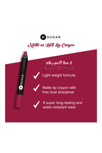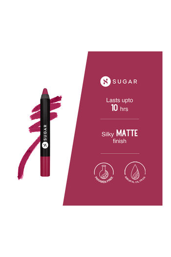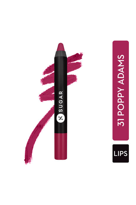 SUGAR Cosmetics Matte As Hell Crayon Lipstick - 31 Poppy Adams (Raspberry Pink) with Sharpener, 2.8 g