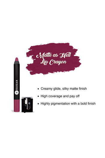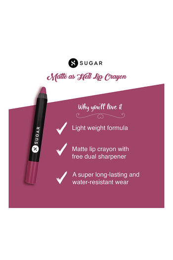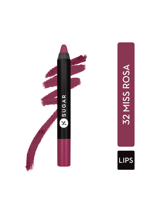 SUGAR Cosmetics Matte As Hell Crayon Lipstick - 32 Miss Rosa (Dusky Rose) with Sharpener, 2.8 g