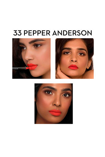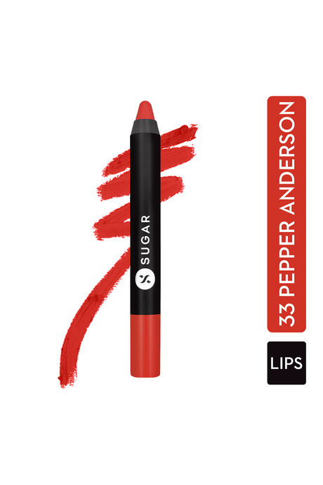 SUGAR Cosmetics Matte As Hell Crayon Lipstick - 33 Pepper Anderson (Orangey red) with Sharpener, 2.8 g
