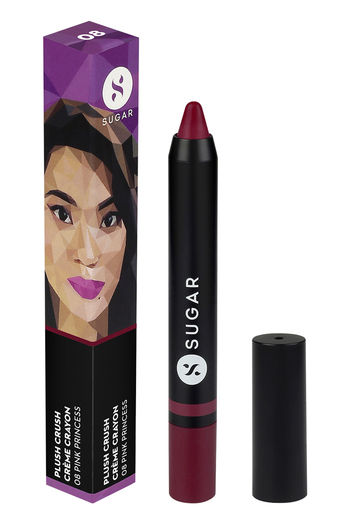 SUGAR Cosmetics Plush Crush Creme Crayon Lipstick - 08 Pink Princess (Pink with a blue undertone), 1.8 g