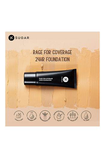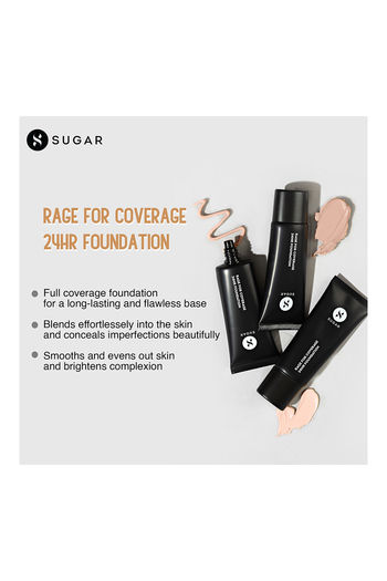 SUGAR Cosmetics Rage For Coverage 24Hr Foundation - 15 Cappuccino (Light, Cool Undertone), 25 ml
