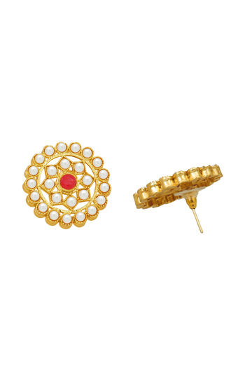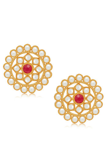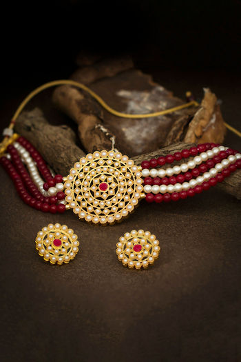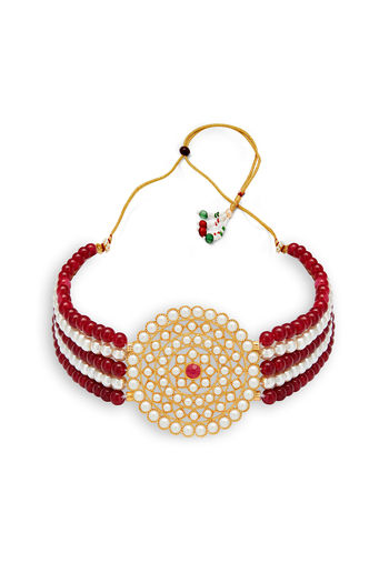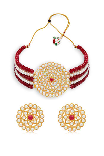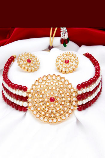 Sukkhi Stunning Gold Plated Maroon & White Pearl Choker Necklace Set for Women