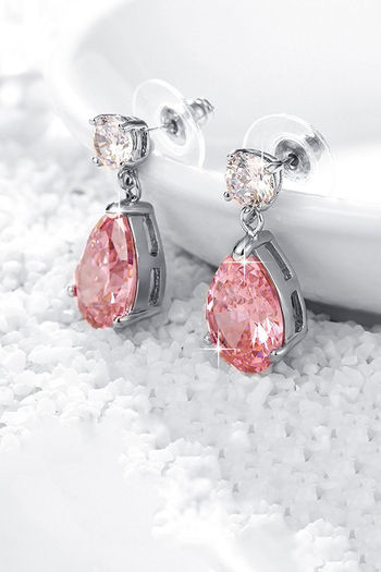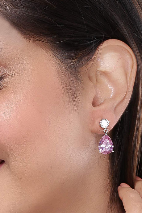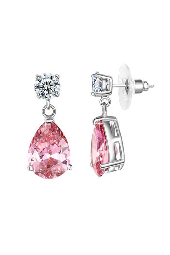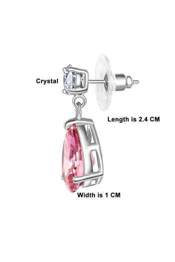 Yellow Chimes Swarovski Pink Crystal studded Silver-Toned Drop Earrings