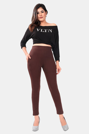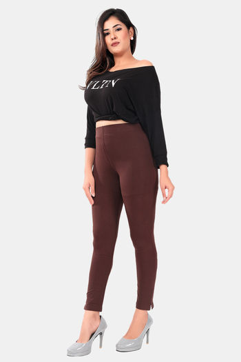 Sweet Moon Knit Cotton Yoga Leggings-Brown