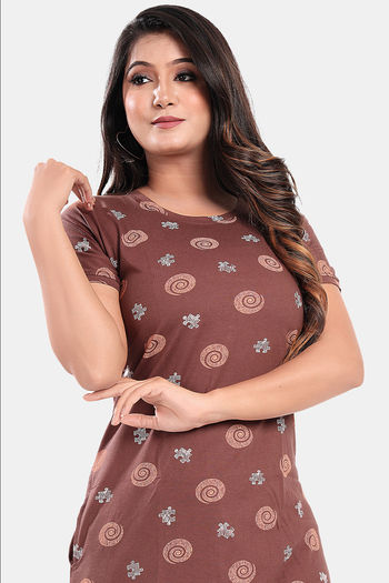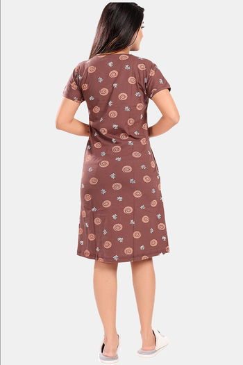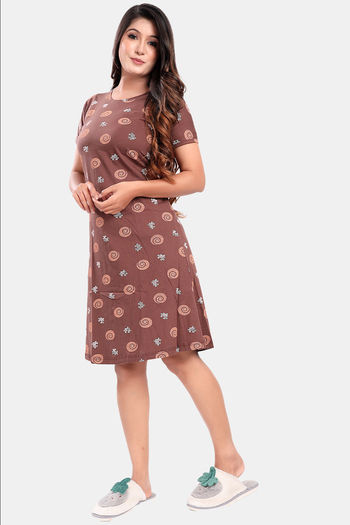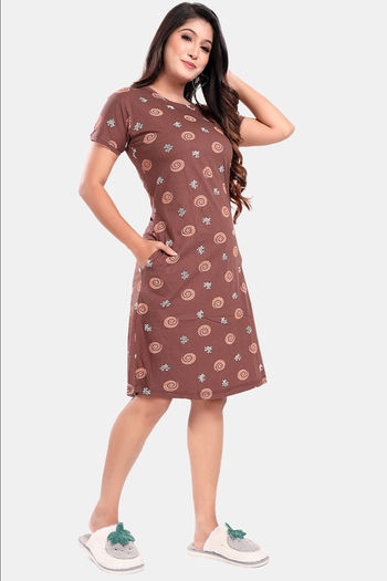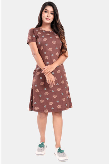 Sweet Moon Knit Cotton Loungewear Dress - Brown