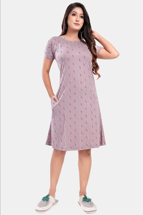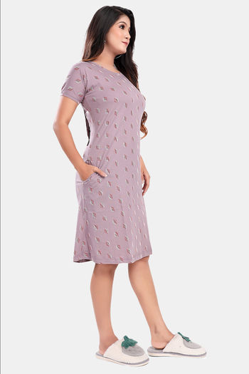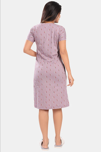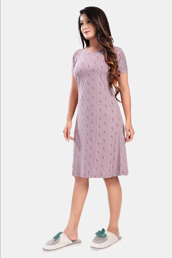 Sweet Moon Knit Cotton Loungewear Dress - Pastel Lavender