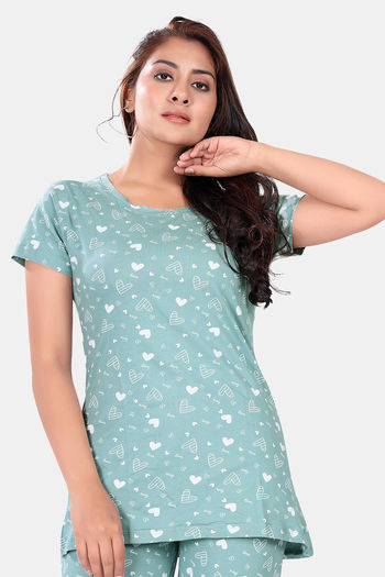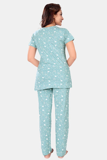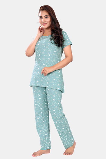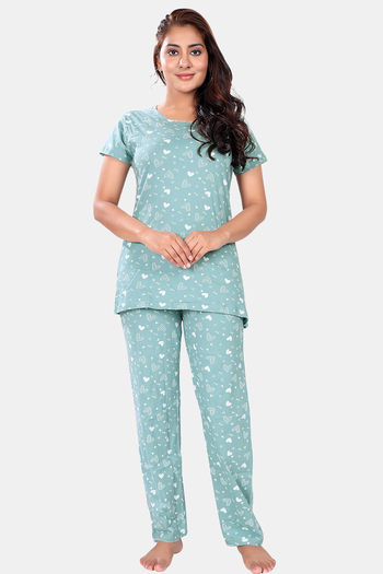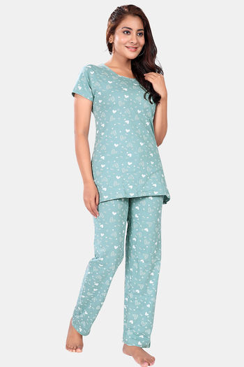 Sweet Moon Knit Cotton Loungewear Set - Pastel Pista