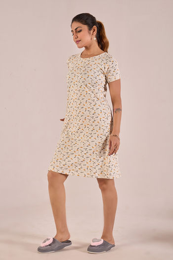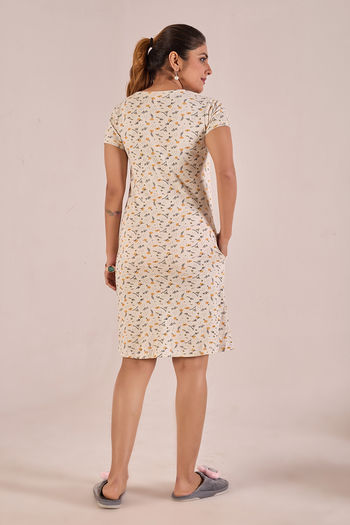 Sweet Moon Knit Cotton Mid Length Nightdress - Creamy Light Yellow