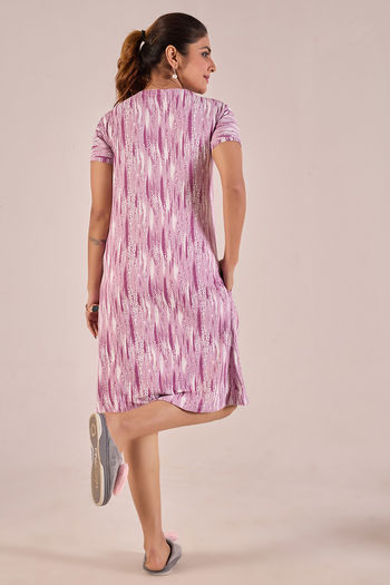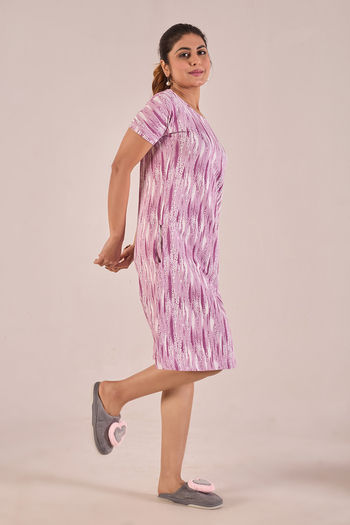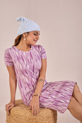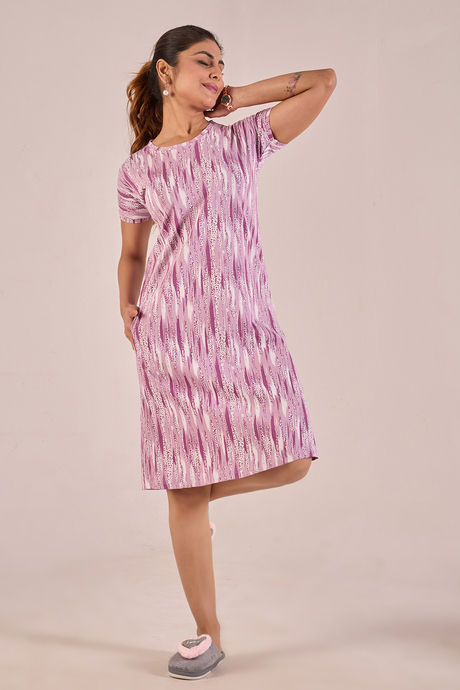 Sweet Moon Knit Cotton Mid Length Nightdress - Lilac