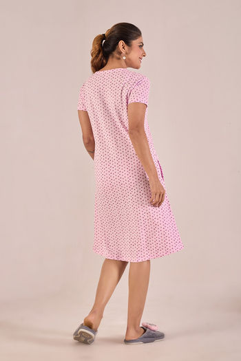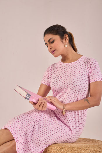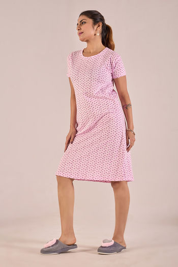 Sweet Moon Knit Cotton Mid Length Nightdress - Millennial Pink
