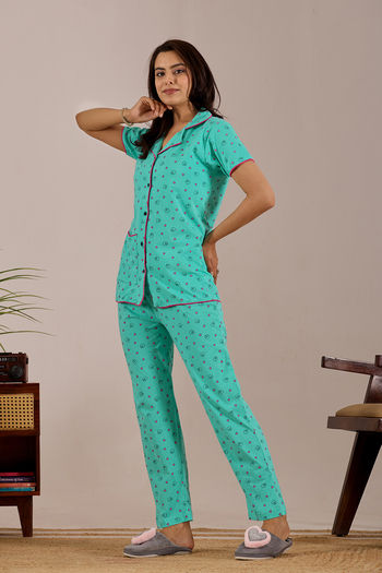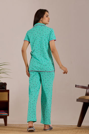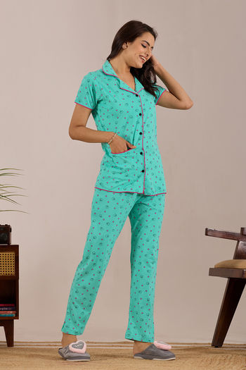Sweet Moon Knit Cotton Pyjama Set - Aqua