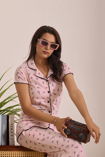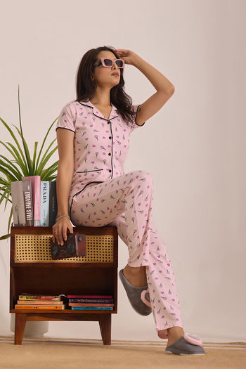 Sweet Moon Knit Cotton Pyjama Set - Baby Pink