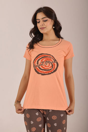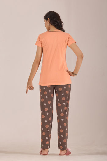 Sweet Moon Knit Cotton Pyjama Set - Brown Lightorange