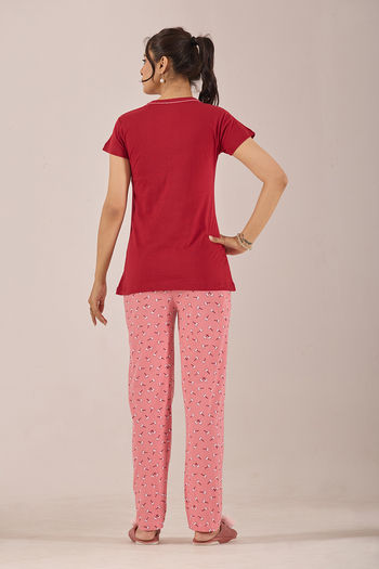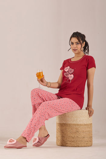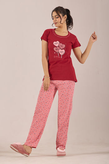 Sweet Moon Knit Cotton Pyjama Set - Darkpink Redishmarun