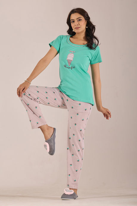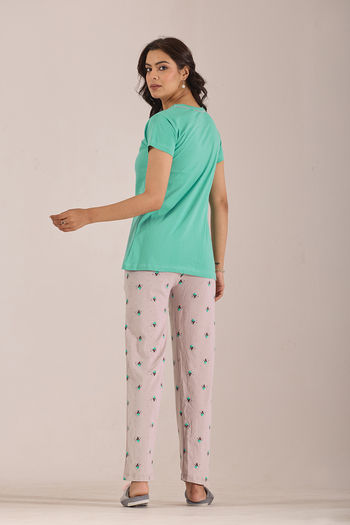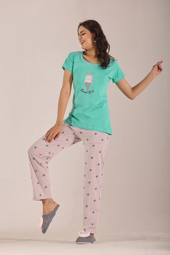 Sweet Moon Knit Cotton Pyjama Set - Nudeviolet Aqua
