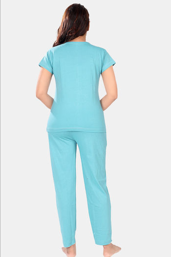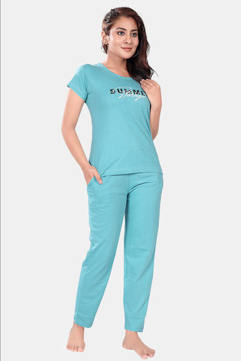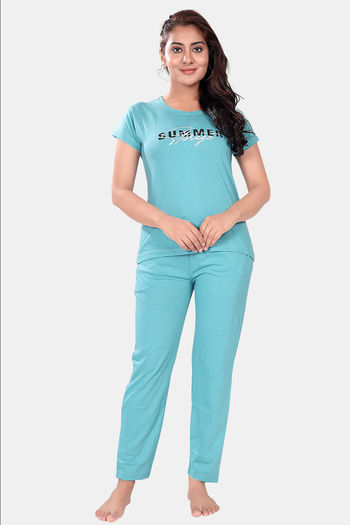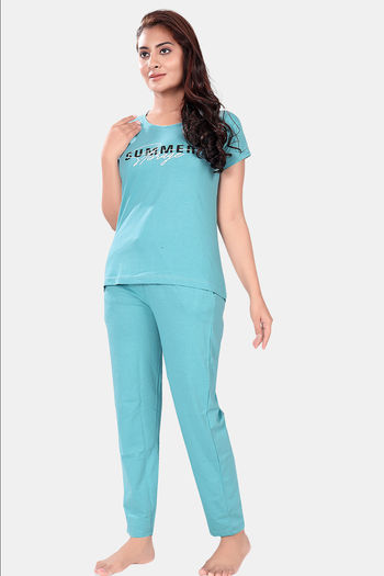 Sweet Moon Polyester Cotton Loungewear Set - Mint