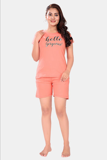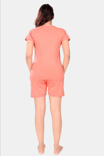 Sweet Moon Polyester Cotton Shorts Set - Dark Peach