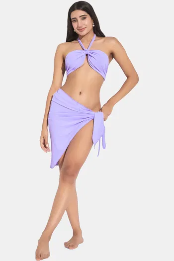 Buy Secrets By ZeroKaata Stretchable Ribbed Bikini Set With Sarong - Lavender
