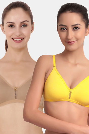 InnerSense Bamboo Cotton Double Layered Non-Wired Full Coverage T-Shirt Bra (Pack of 2) - Multicolor