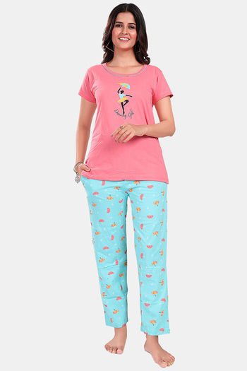 Buy Sweet Moon Knit Cotton Pyjama Set - Nudeviolet Aqua