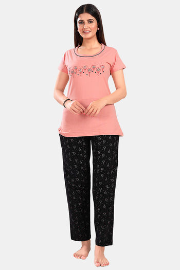 Buy Sweet Moon Knit Cotton Pyjama Set - Black Peach