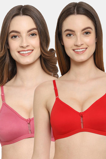 Buy Floret Double Layered  Non Wired 3/4Th Coverage T-Shirt Bra - Red Pink
