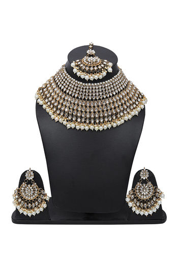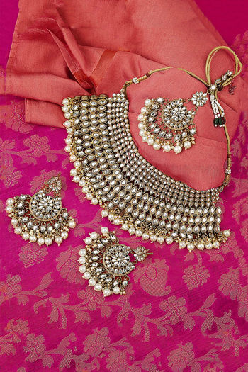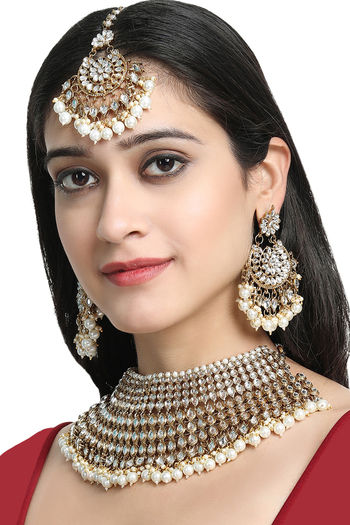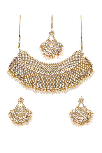Yellow Chimes Traditional Bridal Jewellery Gold-toned Kundan Choker Necklace Set