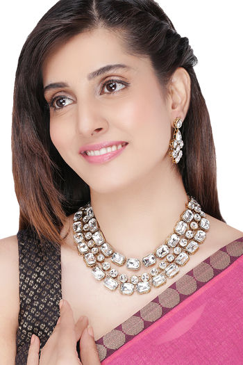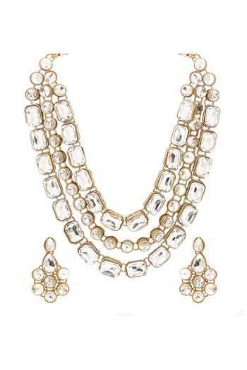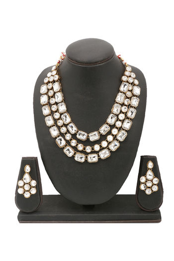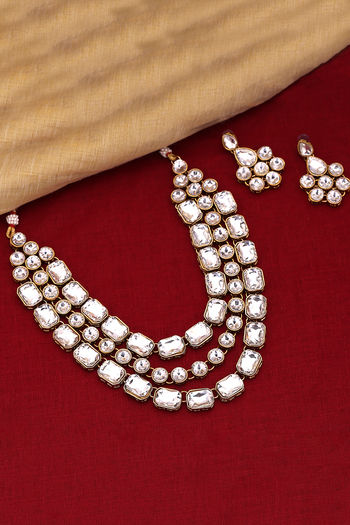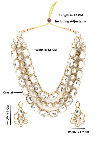 Yellow Chimes Traditional Gold Plated Crystal Embellished Multi-layered Necklace Set