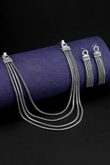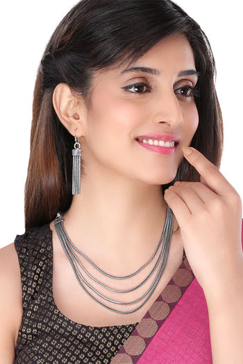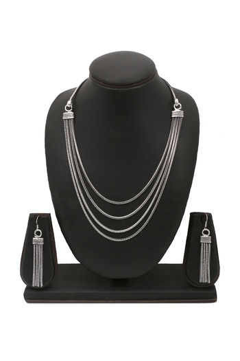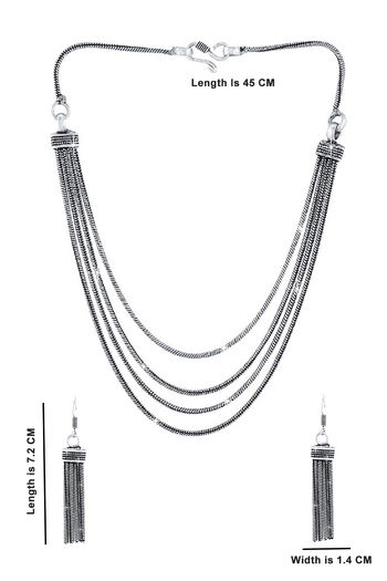 Yellow Chimes Traditional Oxidised Silver-Plated Multi-layer Necklace Set