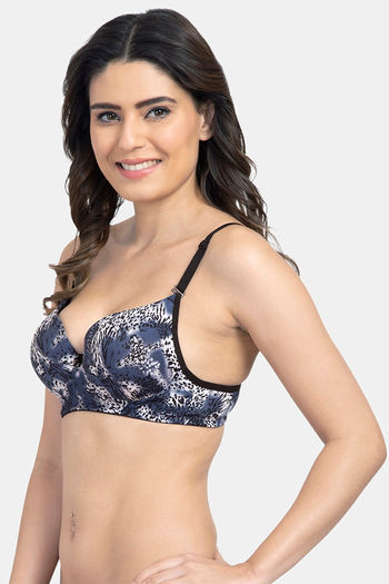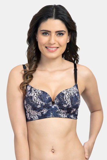 Tweens Padded Natural Lift Lacer Cut Cup Animal Print T-Shirt Bra - Blue White