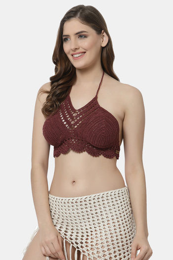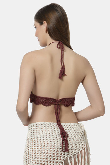Velvery Handcrafted Halterneck Beach Top - Brown