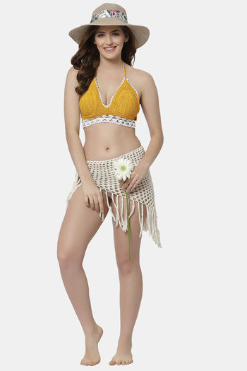 Velvery Handmade Crochet Halterneck Beach Bralette - Yellow